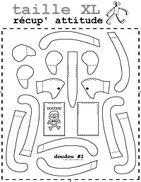 Une façon d’optimiser la (future) récup’ de façon ludique va être de déjà prévoir la fin de vie du tee-shirt va être d’imprimer en transfert un patron de doudou.