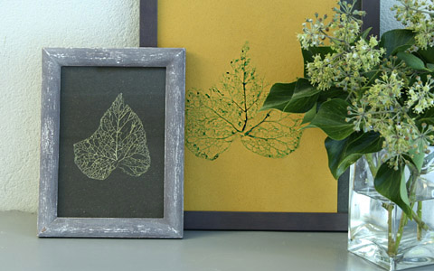 1. Choisir des feuilles épaisses et brillantes (feuilles de lierre comme sur l’exemple, d’érable, d’hortensia… Sur les feuilles trop fragiles, cette méthode ne fonctionne pas.)