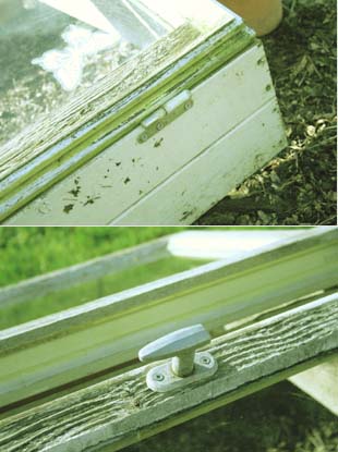 Fixer les paumelles mâles sur le cadre, puis placer chaque ouvrant de fenêtre. Visser ensuite des poignées sur chaque battant. On peut prévoir des crochets avec des crémaillères pour ouvrir plus ou moins les fenêtres et les fixer ou de simples bâtons.