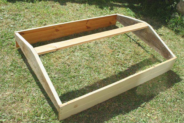 Mesurer une fenêtre (largeur et hauteur) et fabriquer un cadre en conséquence. Le cadre peut-être plat ou profilé comme sur la réalisation. La pente, permettant comme sur un toit, à l’eau de pluie de bien s’évacuer.